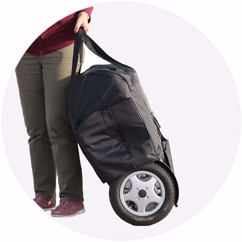 Unsere Schutzabdeckung ist das perfekte Zubehör für diejenigen, die ihren Elektrorollstuhl beim Transport zusätzlich schützen möchten, beispielweise beim Einchecken ins Flugzeug oder beim Verladen ins Auto. Die Schutzabdeckung ist schwarz und besteht aus haltbarem Nylongewebe. Die Abdeckung wird über den gefalteten Elektoroollstuhl gezogen und unter dem Sitz mit Klettverschluss befestigt. Sie hat zwei Griffe.