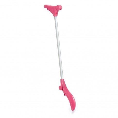 Ausziehen von Kompressionsstrümpfen leicht gemacht: Mit dieser Ausziehhilfe lassen sich Socken und Kompressionsstrümpfe in Sekunden ausziehen, und das ohne grosse Kraftanstrengung und ohne den Rücken zu Belasten. Die Ausziehhilfe erinnert in der Form an einen Schuhlöffel, der an einem langen Stab befestigt ist. Er kann auch zum An- und Ausziehen von Schuhen verwendet werden.