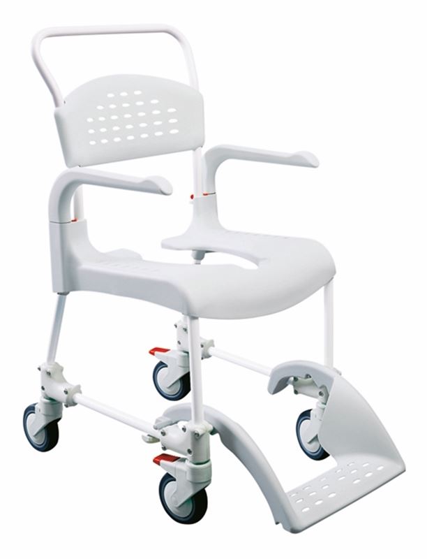 Der Clean erlaubt dem Nutzer eine weitestgehend selbstständige persönliche Hygiene, dem Pflegepersonal wird das Helfen so einfach wie möglich gemacht. Der Clean ist in der reinen Schiebeversion mit vier kleinen Rädern ausgestattet. Der Sitz des Clean ist nach hinten offen, sodass für Benutzer und Pflegepersonal eine optimale Zugänglichkeit möglich ist. Die Armlehnen können nach aussen geschwenkt oder auch ganz abgenommen werden. Die in der Höhe verstellbare Fussplatte lässt sich komplett unter den Sitz schieben, sodass ein Hinsetzen auf den Stuhl wesentlich erleichtert wird.