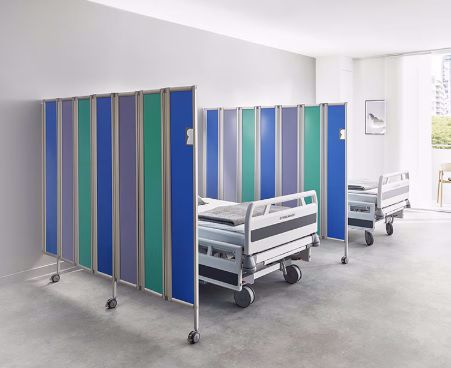 Formschön und elegant schützt die Faltwand die Intimsphäre Ihrer Patienten. Flexibel einsetzbar als Sichtschutz oder Raumteiler, ist die robuste und stossfeste Faltwand blitzschnell in Position gebracht und nach Gebrauch wieder platzsparend zusammengefaltet.
