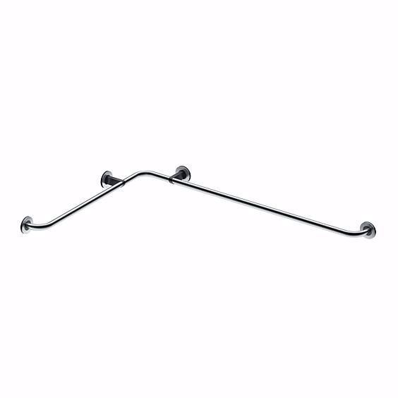 Haltegriff aus Edelstahl fein matt, als 90°-Handlauf-Kombination für Dusch- und Wannen-Bereich, für optimales Greifen und Stützen, Handgreifform elliptisch durch Ovalrohr 36,5 x 22 mm mit 45°-Schrägstellung, verdeckte Befestigung durch Abdeckblenden aus Edelstahl fein matt, Wandhalterungen aus Aluminium schwarz-grau (RAL 7021), Ø 70 mm, inkl. Befestigungsmaterial für massives Mauerwerk.