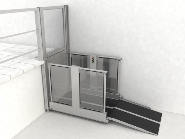 Die Hebebühne Liftboy 5 ist ein einzigartiger vertikaler Rollstuhllift mit einer Hubhöhe bis zu 1300mm. Dieser Doppelscherenhublift wird rein elektrisch mit 2 Aktuatoren angetrieben.