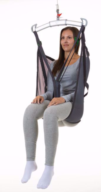 Der Hebegurt sorgt für eine aufrechte und stabile Sitzhaltung und stützt den gesamten Rücken sowie den Nacken. Wenn zusätzlicher Halt für den Kopf erforderlich ist, empfiehlt sich die Verwendung eines Modells mit hohem Rücken, wie etwa der Liko HighBack Sling. Die Arme des Pflegebedürftigen befinden sich innerhalb des Tragegurts, was ein sicheres und angenehmes Sitzgefühl ermöglicht.