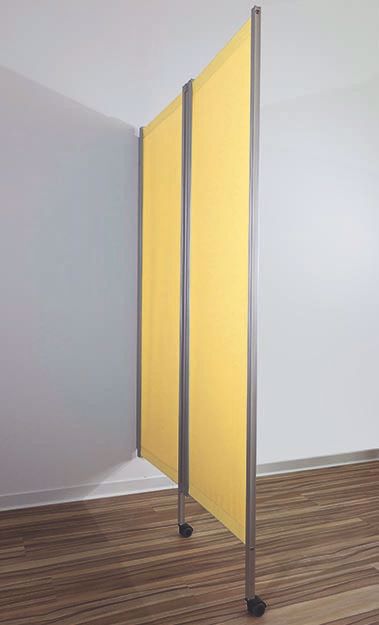 Die Bespannung mit staph CHEK-Gewebe bietet nicht nur eine hohe Blickdichte dank der 360° Scharniere, sondern ist auch antimikrobiell, schwerentflammbar, selbstverlöschend, antistatisch und äusserst langlebig. Die Pflege gestaltet sich einfach, da das Gewebe nicht gewaschen werden muss. Flecken lassen sich problemlos mit einem Schwamm und Haushaltsreinigern entfernen. Alternativ ist die Trennwand gegen Aufpreis mit Trevira®CS Bespannung erhältlich, um den individuellen Anforderungen gerecht zu werden.