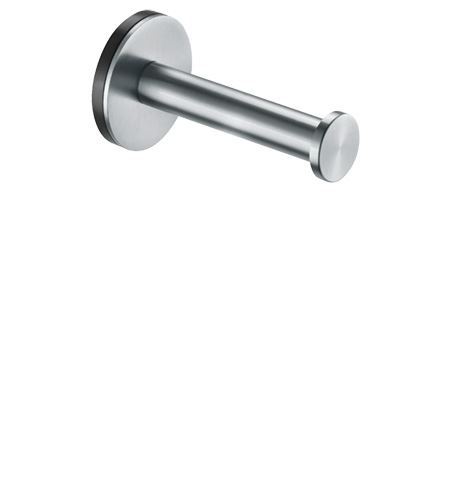 Mantelhaken aus Edelstahl fein matt, 16 mm Schaftdurchmesser, mit KS-Wandhalterung in schwarz-grau (RAL 7021), Ø 44 mm, verdeckte Befestigung durch Abdeckblende aus Edelstahl fein matt, inkl. Befestigungsmaterial für massives MauerwerkLänge 86 mm