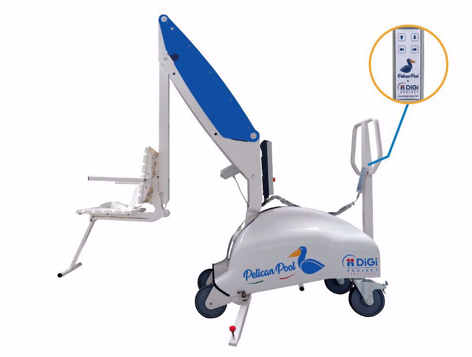 Der Pelikan Poollift ist das neue Gerät, das Menschen mit eingeschränkter Mobilität den Zugang zum Pool garantiert. Dieser neue Poollift ermöglicht dank seiner fortschrittlichen technischen Eigenschaften die Beseitigung architektonischer Barrieren auch in Schwimmbädern mit Poolrändern bis zu einer Höhe von 50 cm.