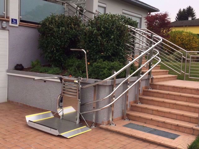 Überall einsetzbarer Plattformlift, auch in engen und kurvigen Treppenhäuser.