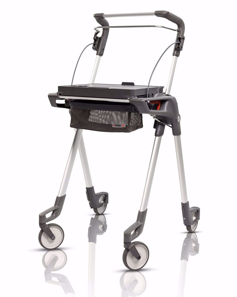 Praktisch für den Transport ist das Netz unter dem Tablett, das zusätzlichen Stauraum für persönliche Gegenstände bietet. Der Rollator lässt sich mühelos und schnell kompakt zusammenklappen, wobei das Tablett sicher verstaut wird. Selbst im zusammengeklappten Zustand steht der Hestia selbstständig.