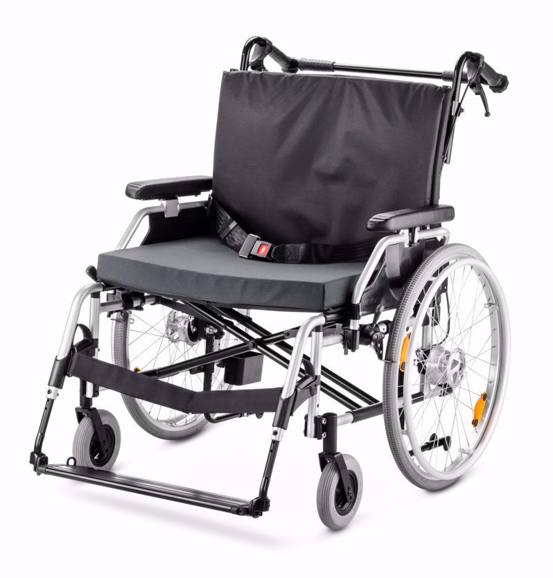 Der Rollstuhl Eurochair² XXL ist besonders für schwere Personen geeignet. Hierfür bietet er einen bequemen, breiten und kräftigen Sitz sowie ein stabiles doppeltes Gestellkreuz (Doppelschere). Er lässt sich zudem an vielen Stellen variabel einstellen, so am Rücken, an den Seitenteilen samt Armlehnen und an den Beinstützen. Mit diesem ausgefeilten Rollstuhl sind Sie endlich wieder selbstständig mobil unterwegs und profitieren von einem Höchstmass an Komfort.