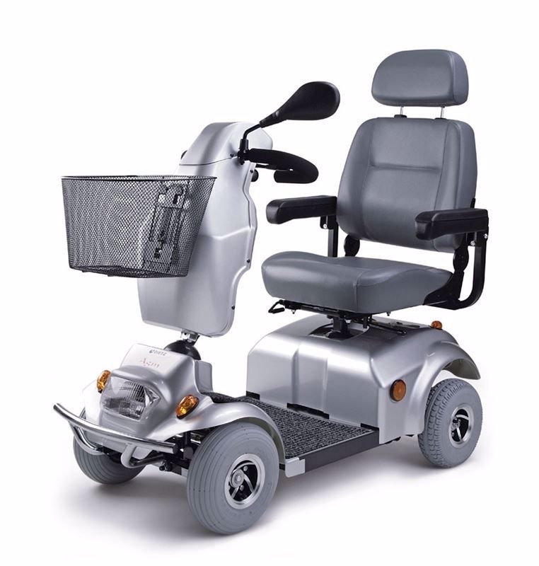 Der kompakte, wendige und sehr komfortable Scooter Agin mit hoher Manövrierfähigkeit und ca. 35 km Reichweite sorgt für beste Mobilität im Alltag. Die Geschwindigkeit lässt sich stufenlos regulieren und über die ergonomisch geformten Wippen leicht dosieren. Ein drehbarer Kapitänssitz zum bequemen Auf- und Absteigen gehört ebenso dazu wie die komplette Sicherheitsausstattung.