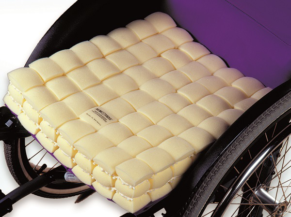 Das Sitzkissen wird so in den Rollstuhl oder auf den Stuhl gelegt, dass die aufgenähte Anti-Slip-Einlage nach unten zeigt. Durch die Aufteilung der Sitzfläche in ca. 50 x 50 mm grosse Teilflächen und die flexible Verbindung dieser einzelnen Elemente durch das spezielle Haltegitter kann eine optimale Anpassung der Auflagefläche erreicht werden, der Auflagedruck wird so minimiert.