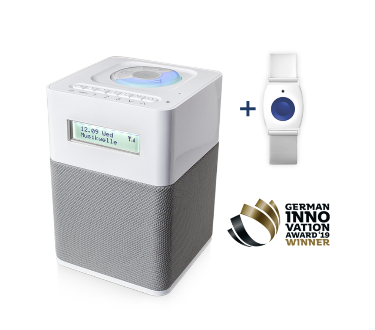 Ein Notrufgerät, das unmittelbar auf die eigene Stimme reagiert? Allegra mit Sprachsteuerung, integriertem DAB+ Radio und Ambient-Licht macht es möglich. Für Sicherheit und Unterhaltung zu Hause.