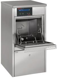 Frei programmierbare Steuerung mit beleuchtetem Display 2 x 40 Zeichen. Auswahl der Spülprogramme, Einstellung des A0-Wertes (A0 = 60 bis = 3000), Einstellung der Cleaner-Dosierung (je nach Wasserhärte).