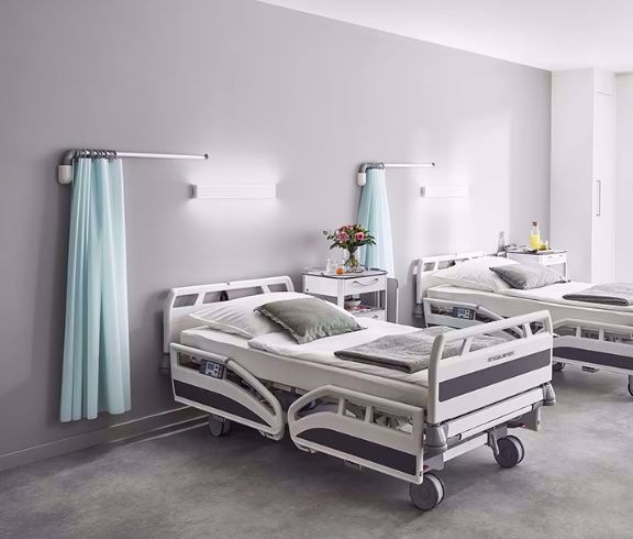 Nach der Nutzung lassen sich die Teleskope einfach zusammenschieben und zur Wand drehen. Dadurch kehrt der Raum schnell zu seinem gewohnten Bild zurück. Die Waschbarkeit und Desinfizierbarkeit der Ropimex Vorhänge runden das Hygienekonzept ab, um eine umfassende Sauberkeit und Sicherheit im Krankenhaus zu gewährleisten.