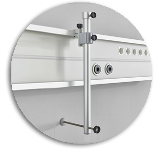 Teleskophalter für Geräteschienen, wandgestützt, höhenverstellbar