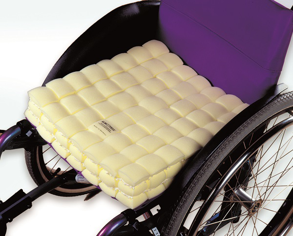 Modulaufbau: Einzelne oder mehrere Würfel lassen sich auf der Unterseite an den von Druck- und Schmerzspitzen betroffenen Stellen entnehmen. Eine individuelle, patientengerechte Druckentlastung wird möglich. Insbesondere bei Amputation, Hemiplegie, Beckenschiefstand, Skoliose oder Gelenkeinsteifung zeigen sich die Vorteile des KUBIVENT-Prinzips.