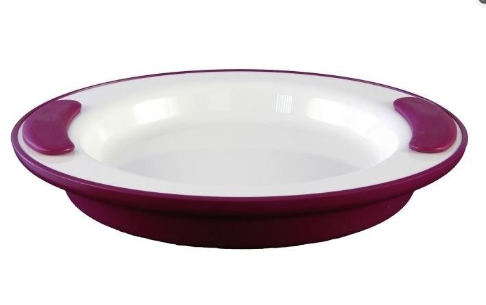 In diesen Thermo-Teller lässt sich heisses Wasser einfüllen. So bleiben warme Speisen länger warm. Die Einfüllöffnungen sind durch die farbigen Griffeinlagen verdeckt. Sie helfen auch, dass der Teller besser gehalten werden kann. Ein umlaufender Silikonring am Boden des Tellers sichert ihn gegen Verrutschen. Der Teller kann auch mit sehr kaltem Wasser gefüllt werden, um Speisen zu kühlen.