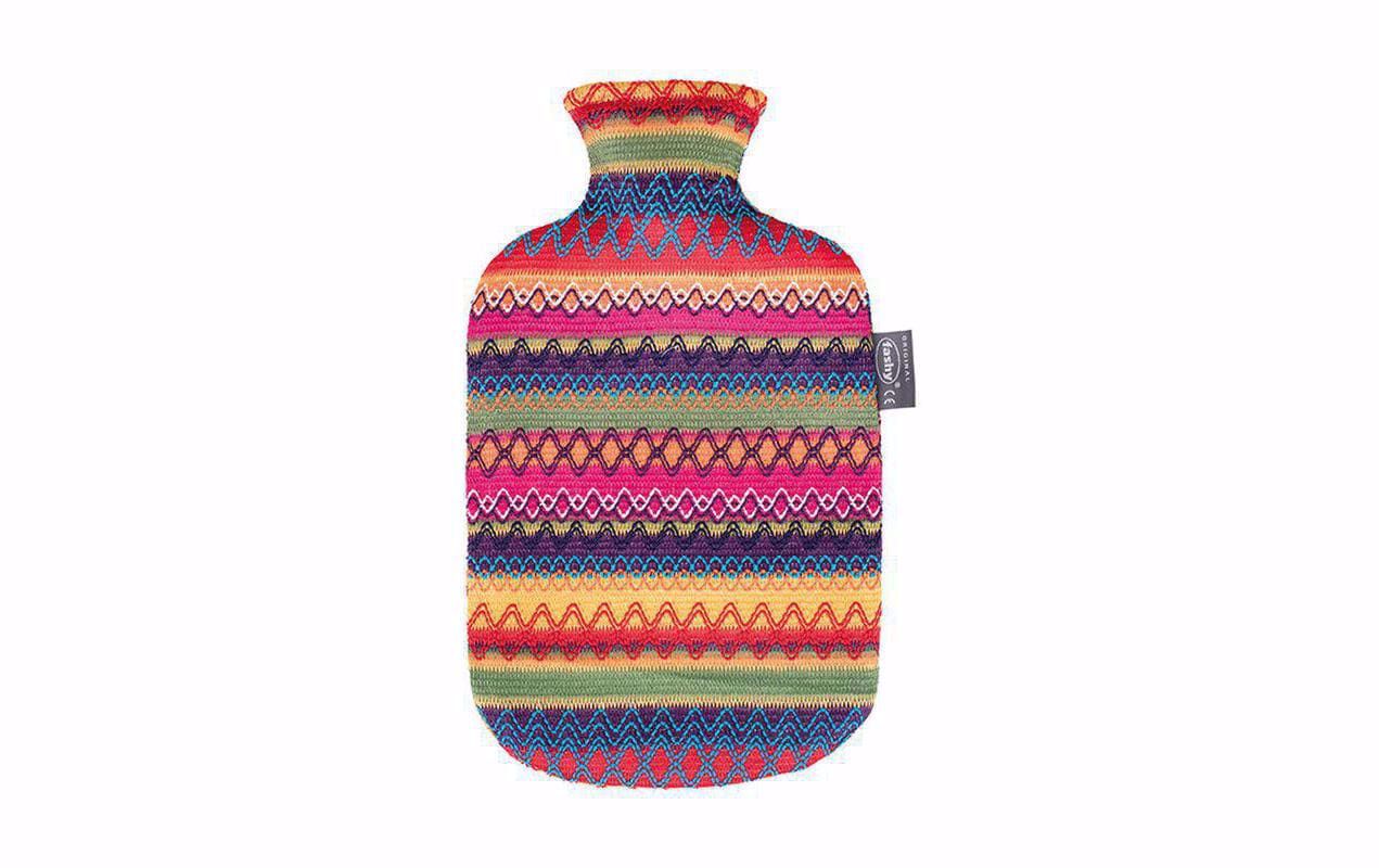 Die Fashy Wärmflasche vermittelt ein behagliches Wohlgefühl und führt dank konstanter Wärme zu angenehmer Entspannung. Die Wärmflasche verfügt über ein extra grosses Einfüllgewinde für ein sicheres Befüllen mit garantiert dichter Verschlusstechnik. Die Bettflasche aus hochwertigem Thermoplastik ist mit einem Vliesbezug in farbigem Peru-Design überzogen.